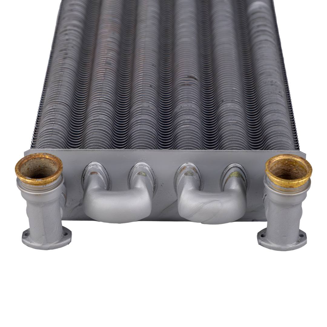 Передает тепловую энергию сжигаемой в камере сгорания газовоздушной смеси теплоносителю посредством теплопроводности. Альтернативное название - монотермический теплообменник.